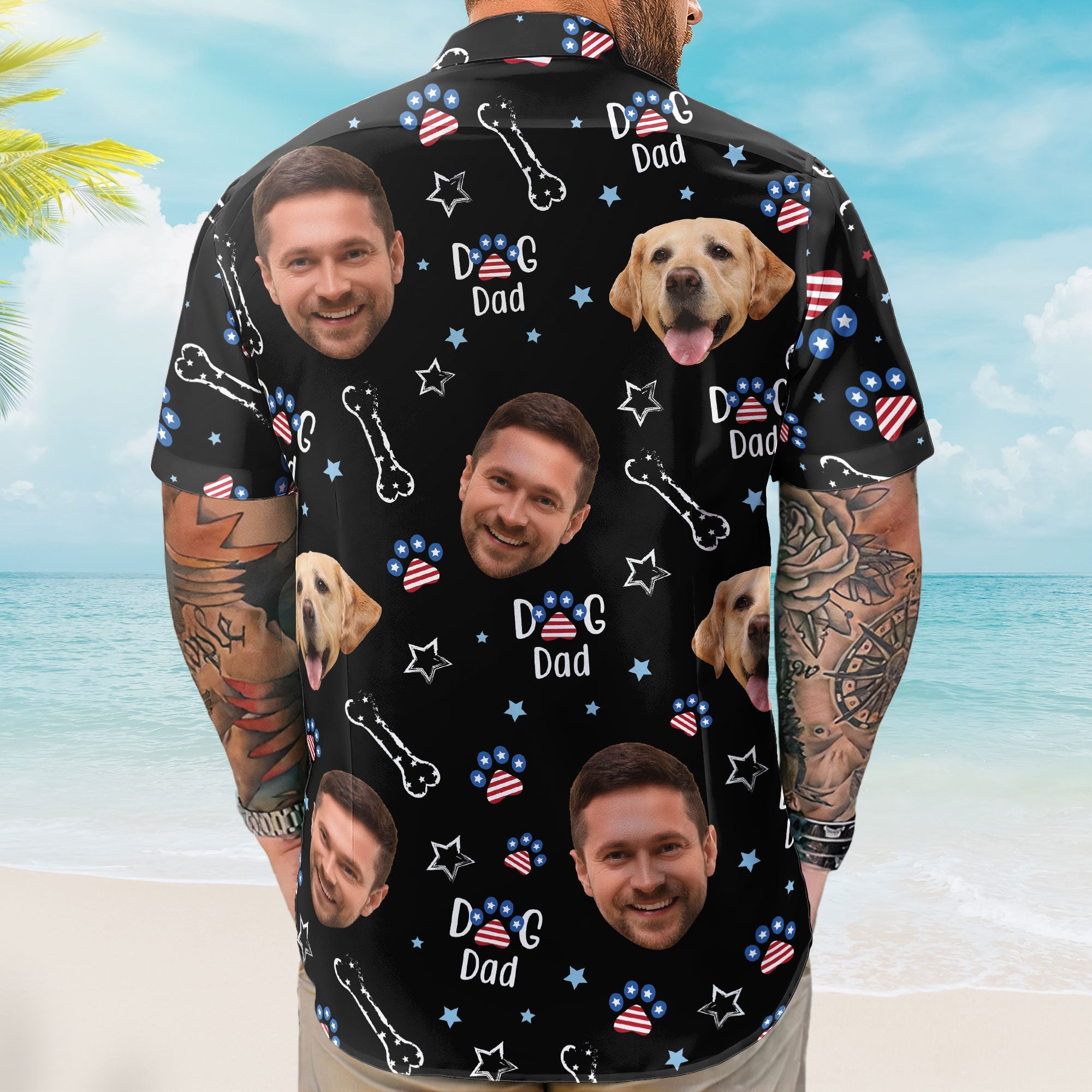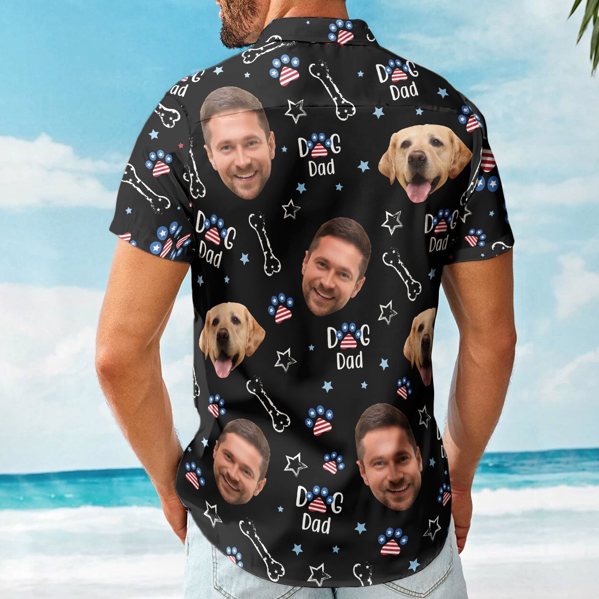 Customize the shirt with your photo to create a unique and personalized design that reflects your love for your furry friends. Whether you’re a proud dog dad, dog mom, or simply a pet lover, this Hawaiian shirt will surely be a hit at any 4th of July celebration, BBQ, or family gathering.