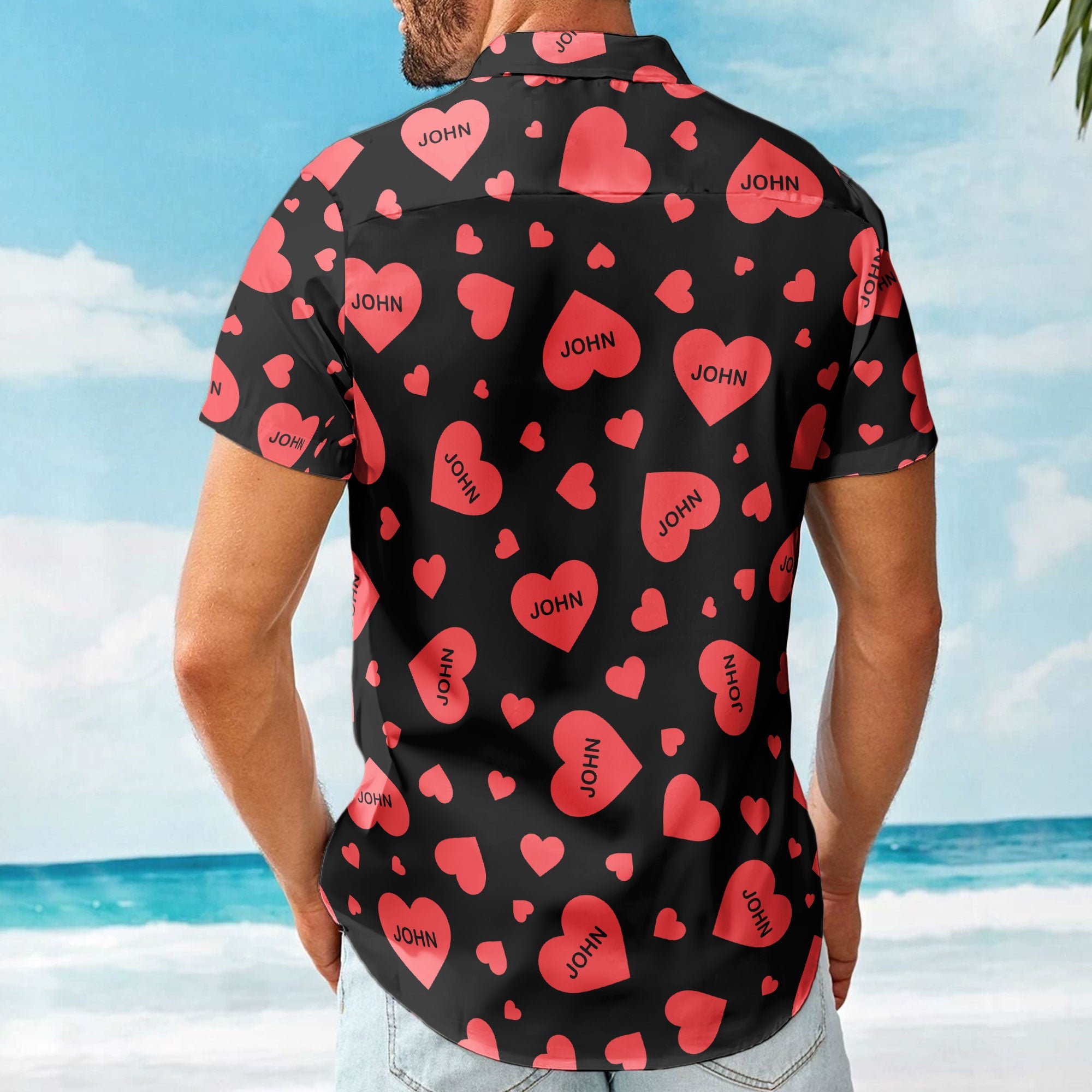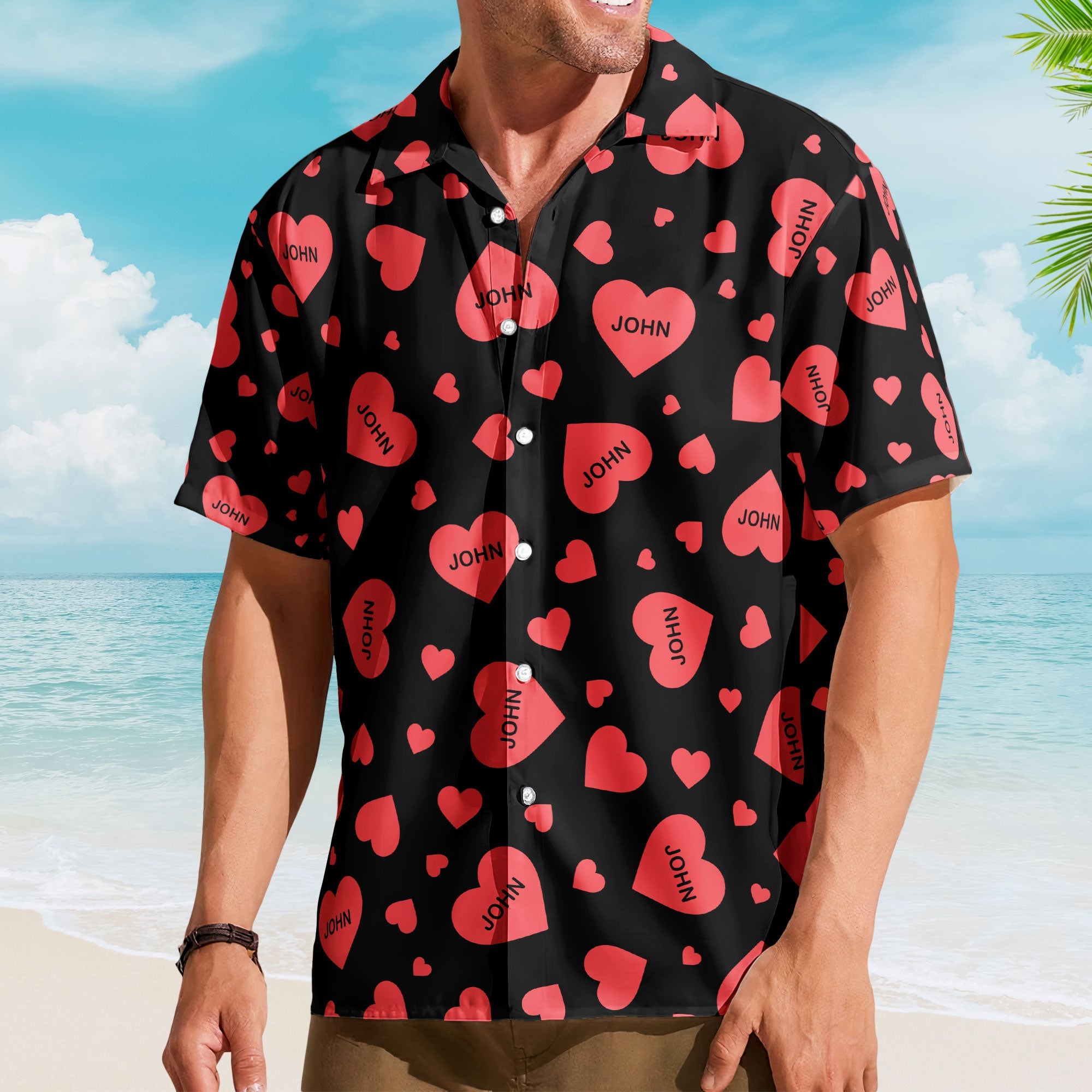 Customize this Hawaiian shirt with a name, transforming it into a one-of-a-kind garment that adds a personal touch to your heartfelt gesture. Whether it’s for your husband, boyfriend, or a special man in your life, this shirt is a symbol of love that they can wear with pride. Make this Valentine’s Day or special occasion unforgettable with a gift that blends style, love, and individuality.