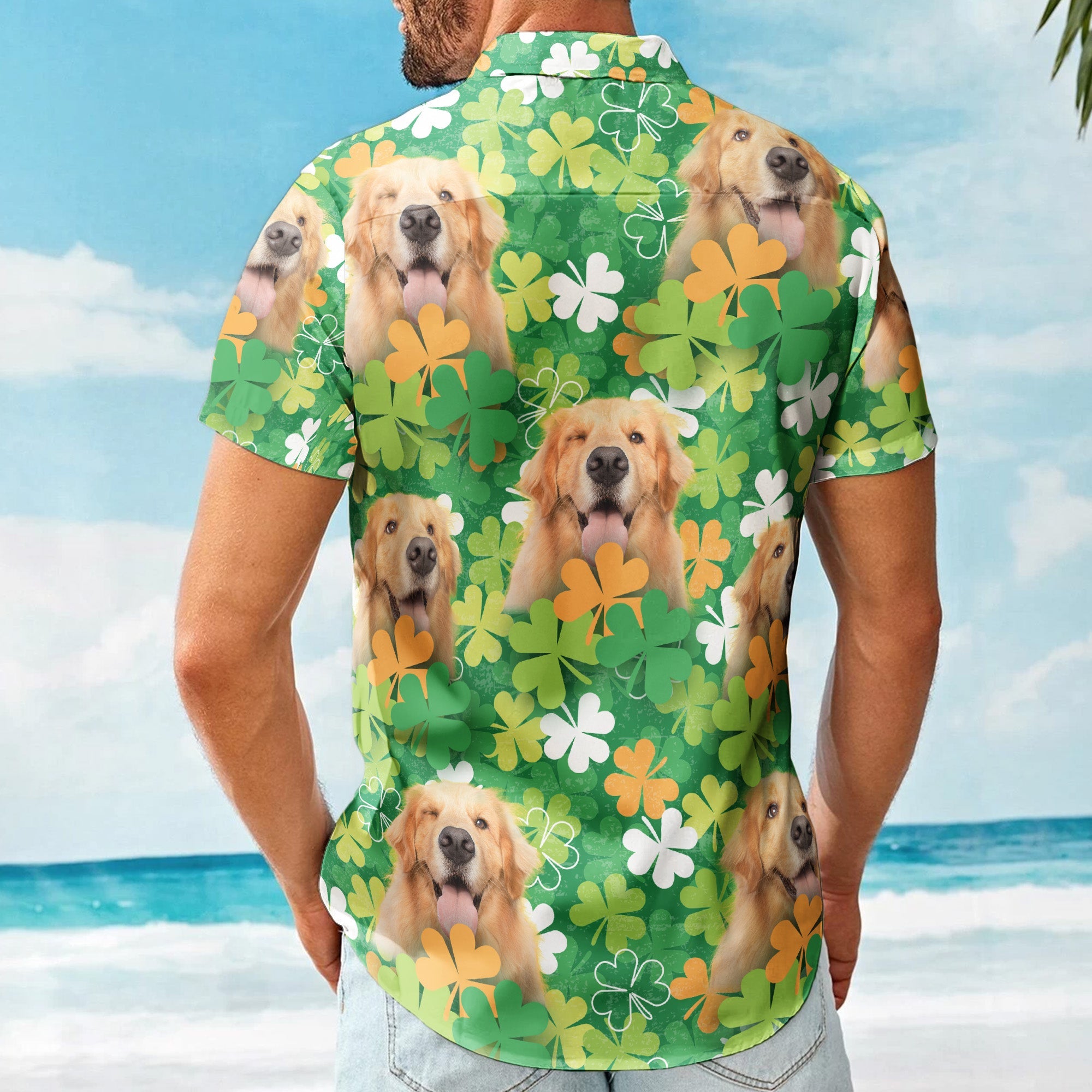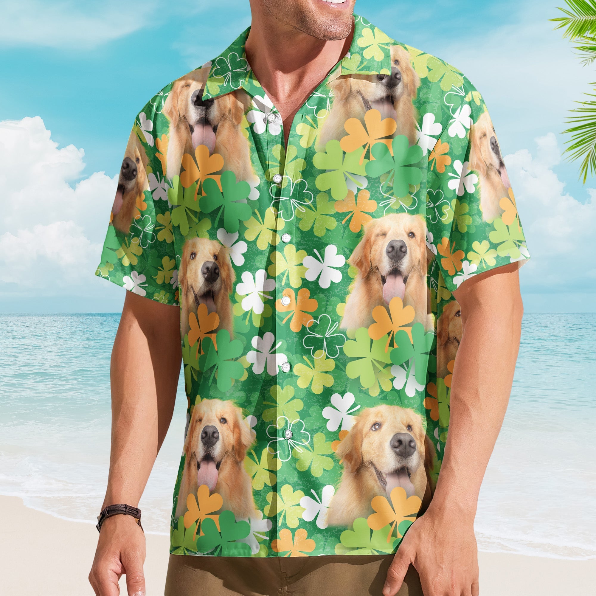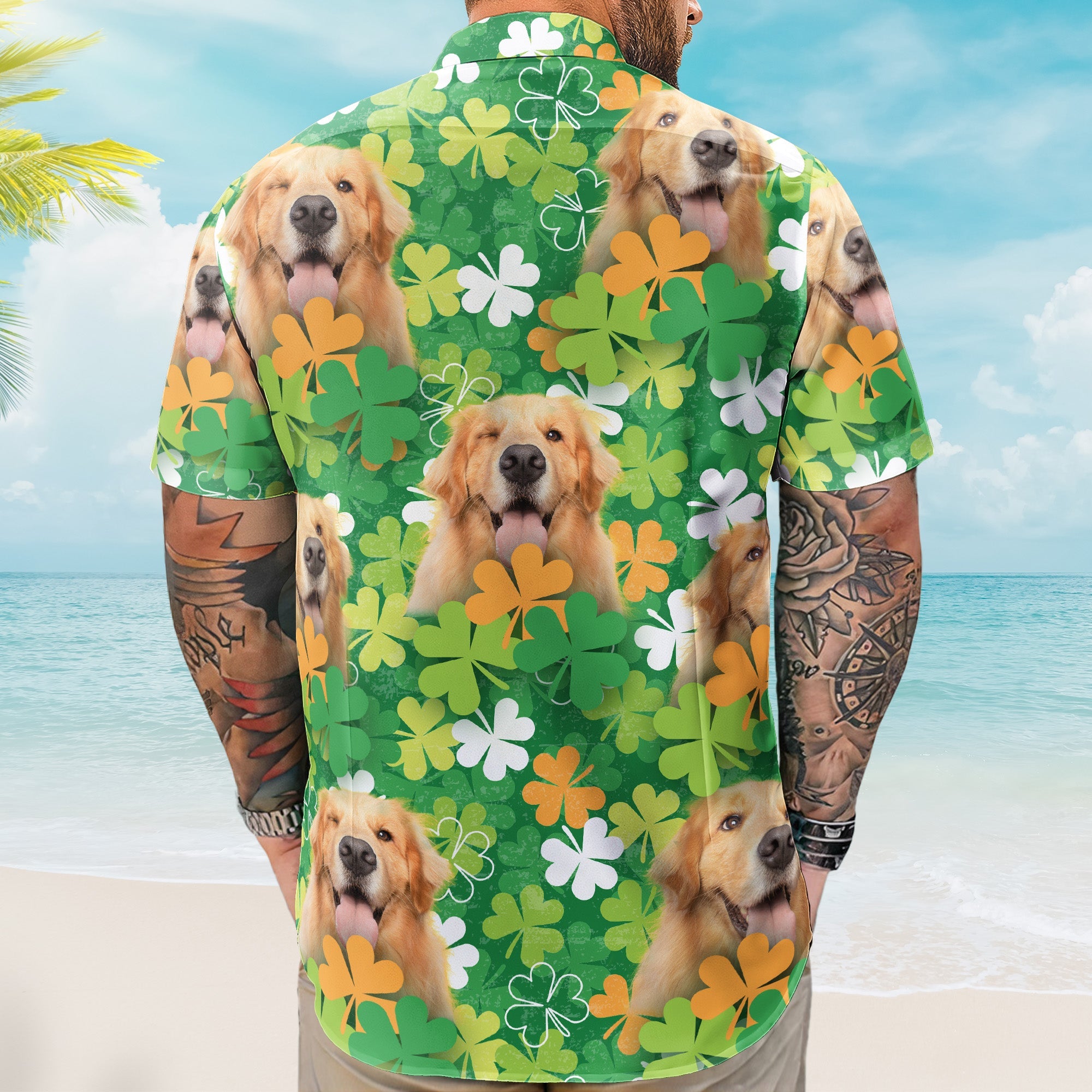 Happy St Patrick Day Together With Pet Photo – Custom Photo Hawaiian Shirts
