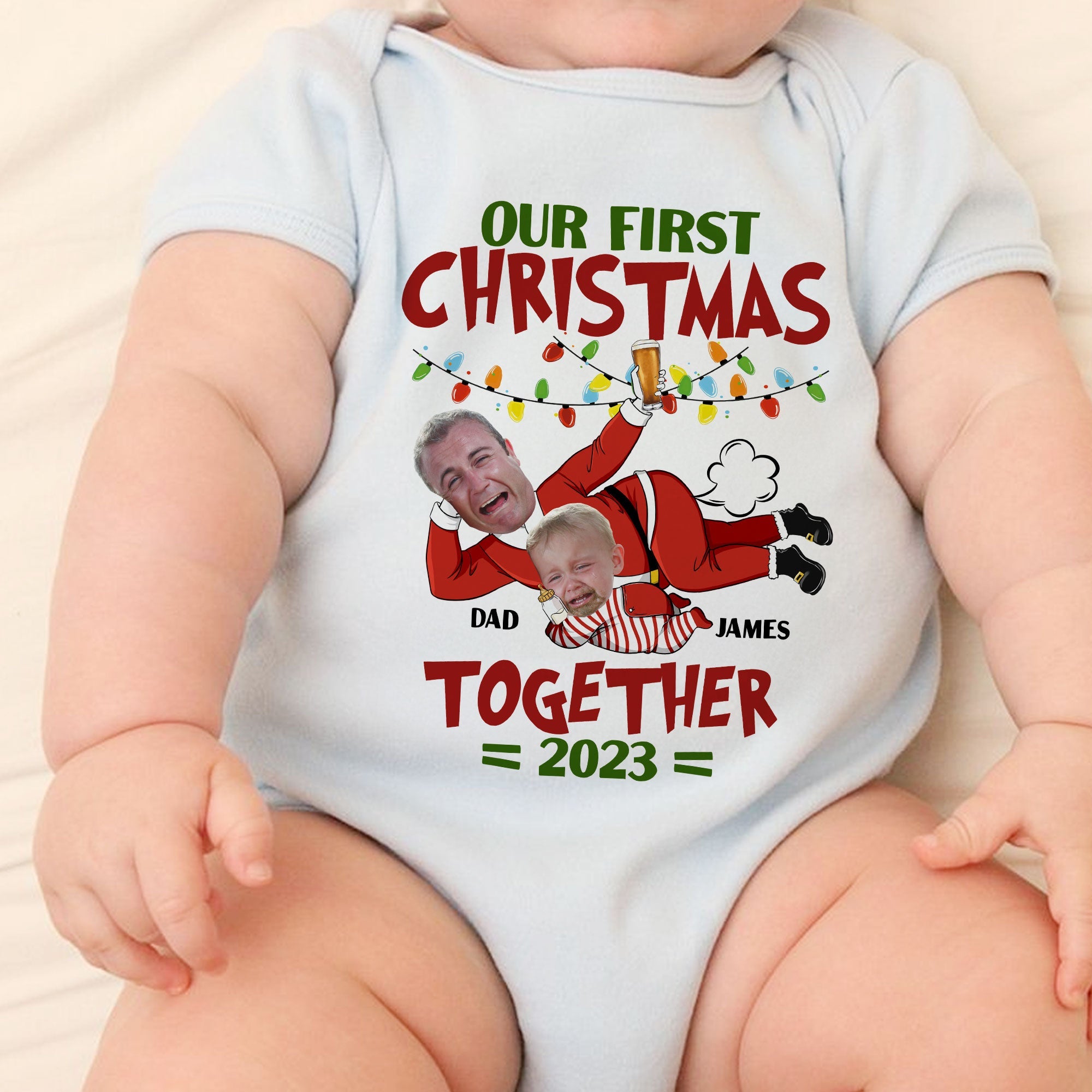 Our First Christmas Together – Personalized Photo Matching Shirt And Baby Onesie